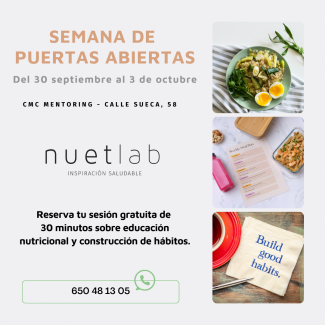La Semana de Puertas Abiertas de NUET LAB llega del viernes 27 de septiembre hasta el jueves 3 de octubre.